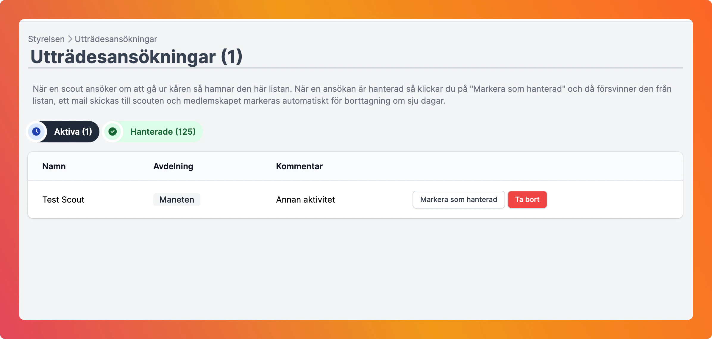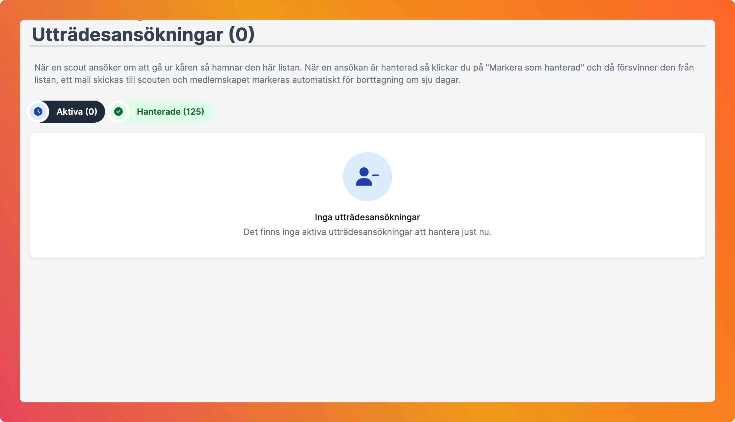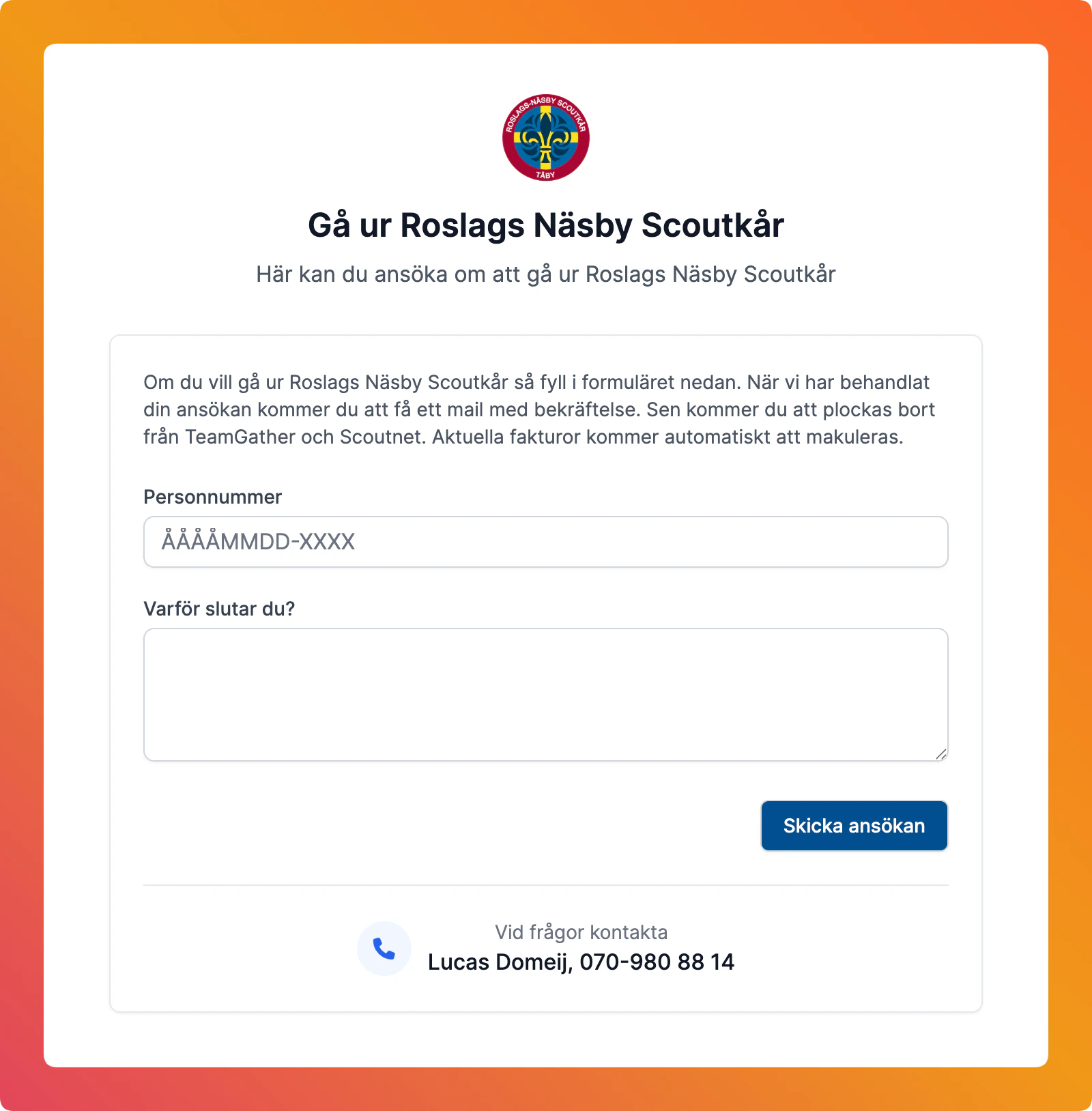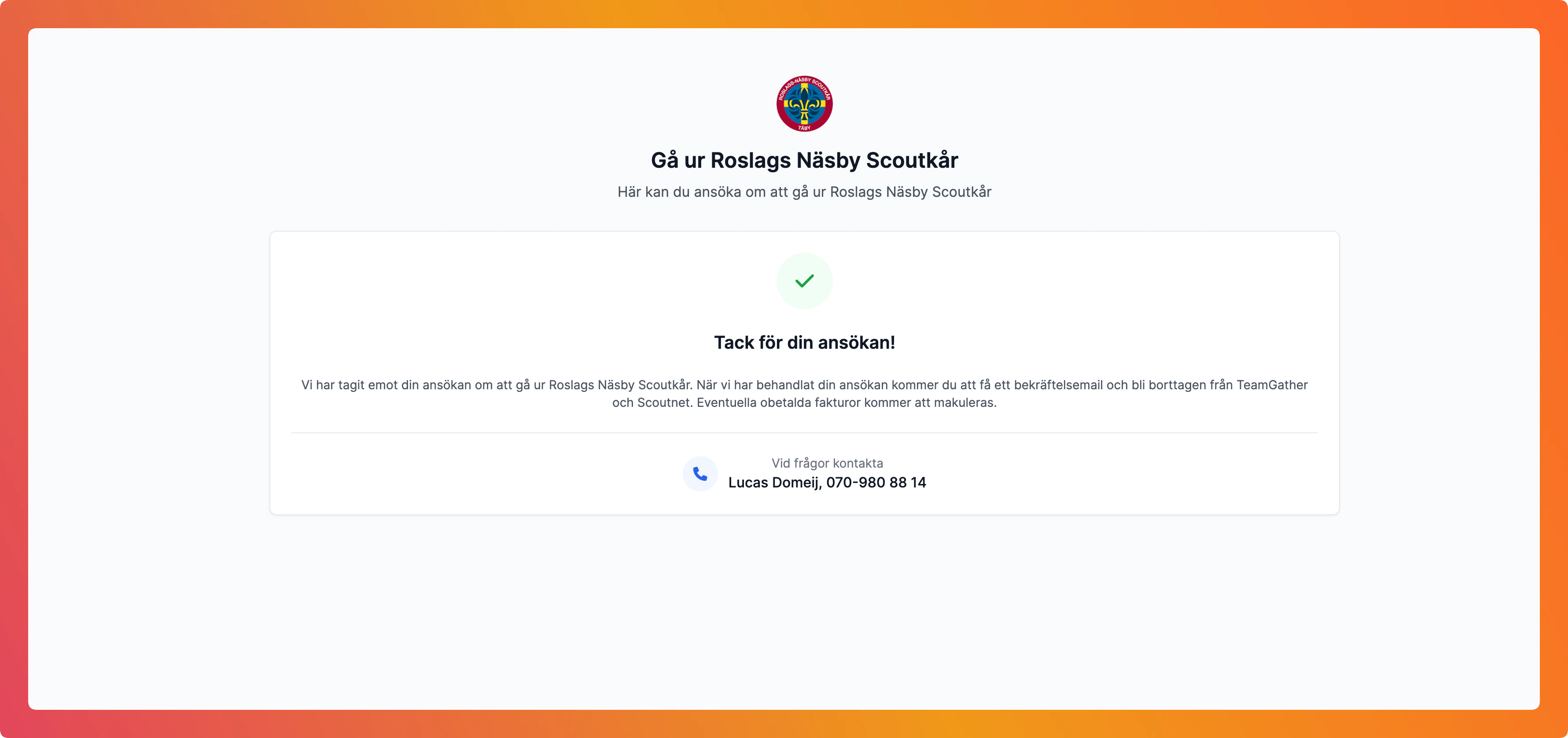 - Efter 7 dagar tas personen bort automatiskt från TeamGather och Scoutnet