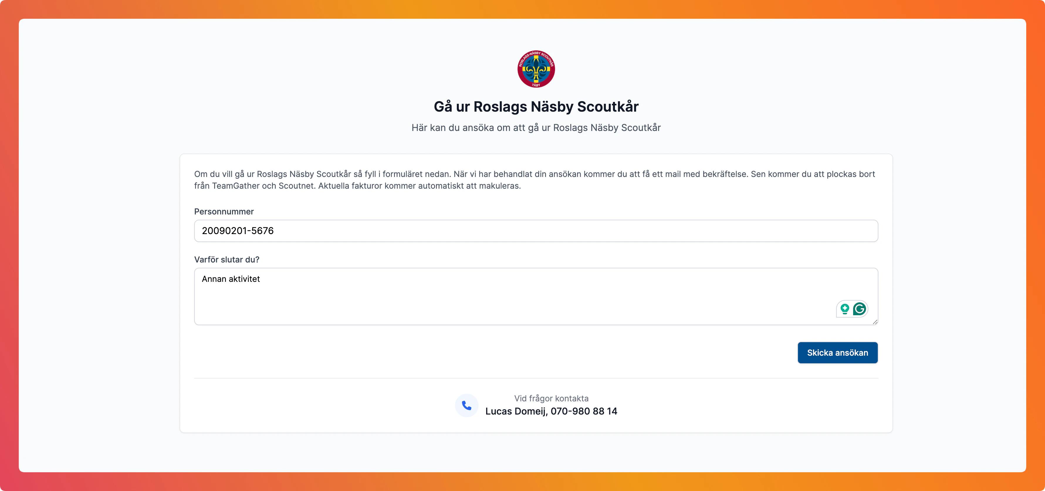 - Kommentar (valfritt) – Varför personen vill gå ur