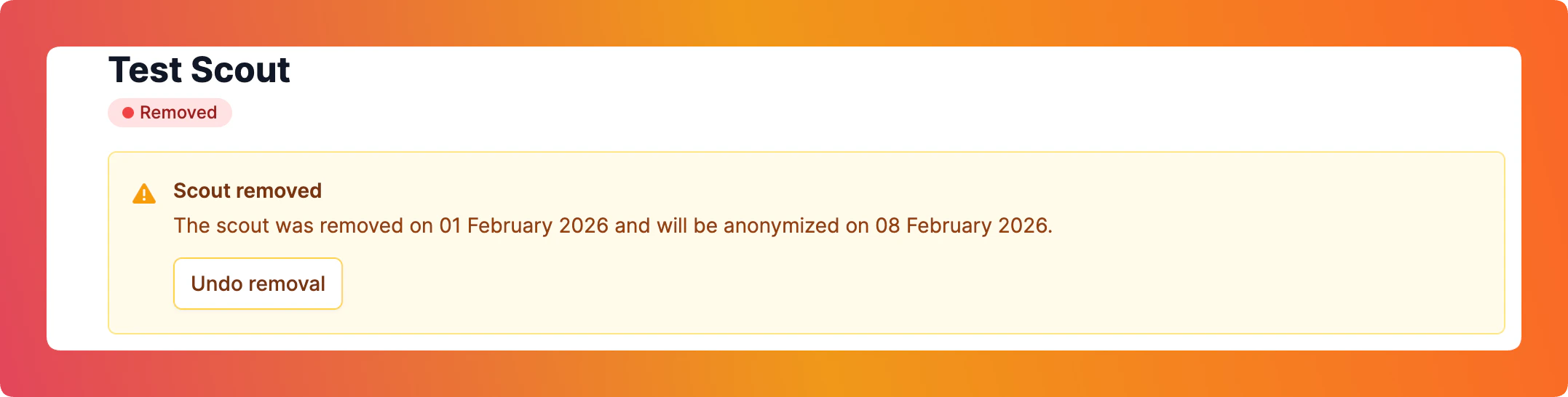 Ja, inom 7 dagar efter att ansökan markerats som hanterad kan ni ångra borttagningen via scoutens profil genom att klicka “Undo removal”.